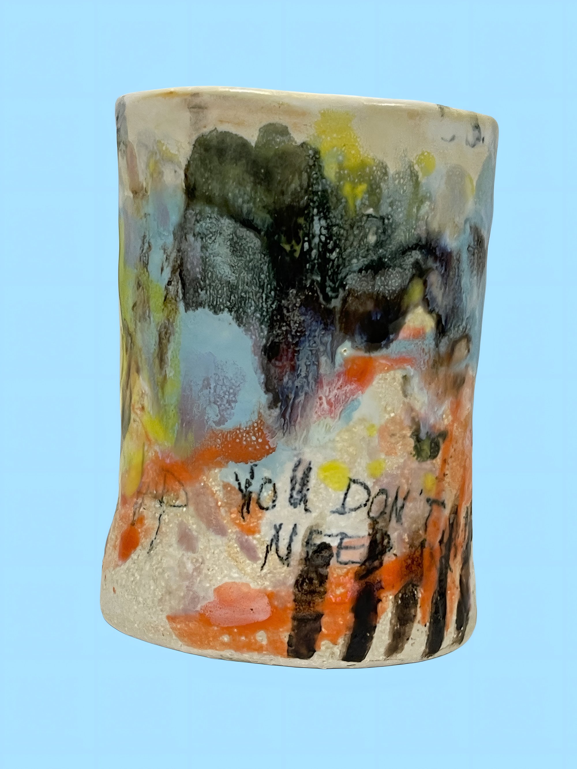 non-toxic, food-safe professional-grade glazes. Let me know which main color you would like - yellow, orange, lila, red, blue and i will make you your own unique cup in my style. It may take up to four weeks to get customer cups ready to ship due to the process of making which includes making the cup, drying time about 5–7 days, hand painting day, firing twice needs 5 days